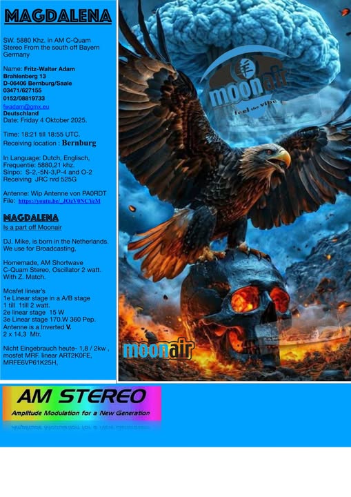 Atlantic 2000 will be on the air this Saturday, 11th of October from 0800 to 0900 UTC (1000 to 1100 CEST) on 6070 and 9670 kHz via Channel 292.
