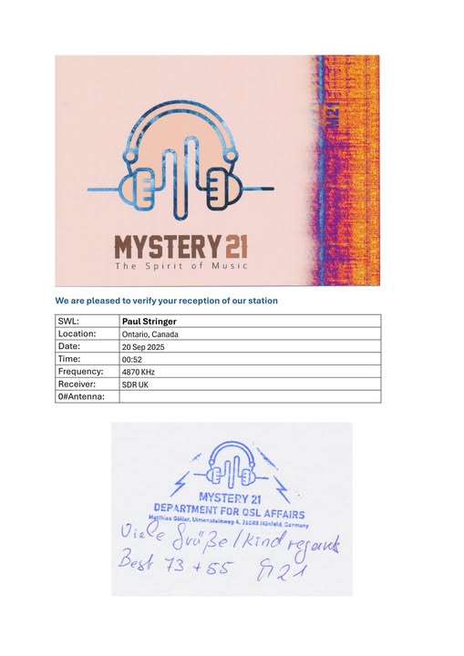 Mystery Radio 21 eQSL Info via Facebook Share this: Click to share on X (Opens in new window) X Click to share on Facebook (Opens in new window) Facebook Click to email a link to a friend (Opens in new window) Email Click to print (Opens in new window) Print Related