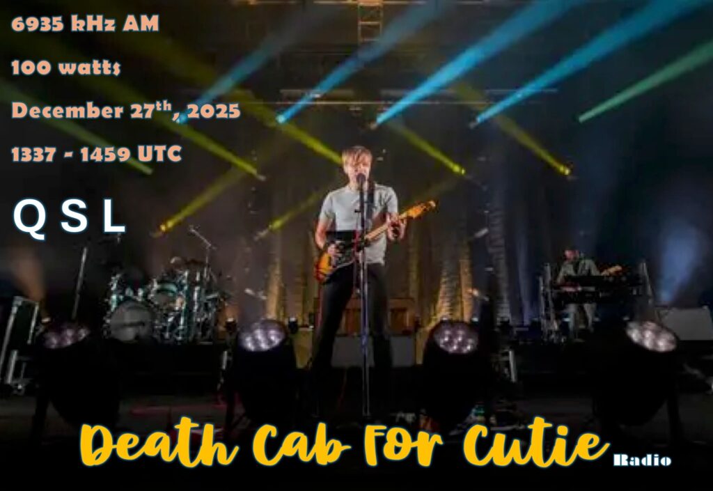 North-America: Death Cab for Cutie Radio eQSL Info via Facebook Share this: Click to share on X (Opens in new window) X Click to share on Facebook (Opens in new window) Facebook Click to email a link to a friend (Opens in new window) Email Click to print (Opens in new window) Print Related