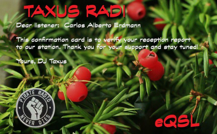 Radio Taxus eQSL Info via Facebook Share this: Click to share on X (Opens in new window) X Click to share on Facebook (Opens in new window) Facebook Click to email a link to a friend (Opens in new window) Email Click to print (Opens in new window) Print Related